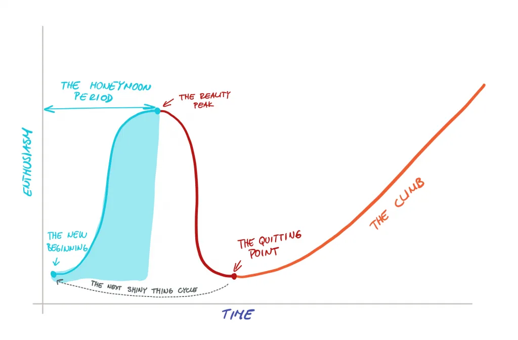 过于雄心勃勃是一种聪明的自我破坏形式🔗 人们常常在创造开始之前,沉溺于想象中完美的创作,导致迟迟不敢行动,因为一旦开始,实际作品就无法达到想象中的完美状态。这种“品味-技能差异”会让人在行动前就预见到作品的不足,从而陷入“生产性回避”,即忙于计划和研究,却避免真正创造。 作者用摄影课的例子说明,专注于数量(Quantity Group)的学生反而能拍出更好的照片,因为他们通过大量的实践,与不完美亲密接触,从失败中学习。而追求质量(Quality Group)的学生,则因为过度分析而停滞不前。 要克服这种自我破坏,需要放下过高的期望,允许自己从初学者的角度出发,享受创造过程中的乐趣和发现。作者用自己的经历和母校的校训“Do-Learn”来鼓励读者先行动后学习,从实践中获得理解。 文章还提到了“放弃点”(the quitting point),即最初的热情消退,工作变得困难的时刻。要克服这个难关,需要专注于改进工作本身,而不是保护自我形象。 最后,作者鼓励读者降低标准,允许自己创造最差的作品,与现实对话,从现实中学习,并提醒读者,重要的作品往往比想象的要小,并且近在咫尺。重要的是行动起来,在实践中不断学习和进步。 Maalvika |