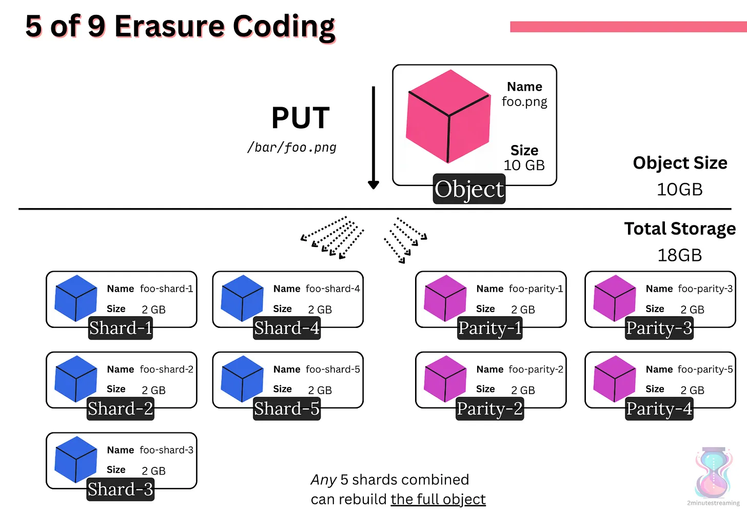 AWS S3 如何在慢速 HDD 的基础上提供每秒 1 PB 的服务🔗 核心是靠 “擦除编码” 将文件拆成 9 份(5 份原始 + 4 份备份)分散存到不同硬盘,实现多硬盘并行读写以突破单硬盘速度瓶颈,同时从用户上传下载(分块并行)、前端服务器(分散请求)到硬盘层面(多盘协同)全链路优化并行效率,还通过 “随机放置数据 + 定期再平衡负载” 避免硬盘过热,再加上规模扩大后用户请求 “错峰” 带来的负载平稳性,最终用普通硬件达成了 “存得多、成本低、读得快、高稳定” 的效果,成为支撑现代互联网的核心存储服务。 Stanislav Kozlovski |